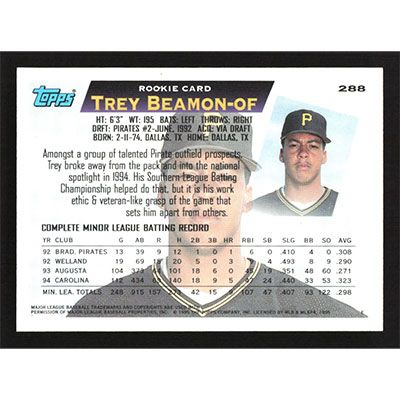 This is a 1995 Topps Trey Beamon Future Star baseball card. The card is #288 and pictures show condition.