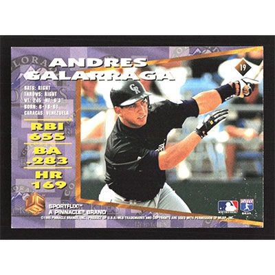 This is a 1995 UC3 Andres Galarraga baseball card. The card is #19 and pictures show condition.