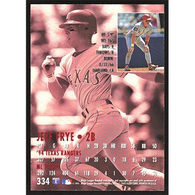 This is a 1995 Ultra Jeff Frye baseball card. The card is #334 and pictures show condition.