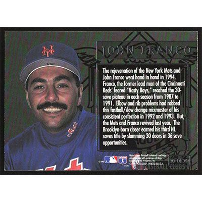 This is a 1995 Ultra League Leaders John Franco baseball card. The card is #10 and pictures show condition.
