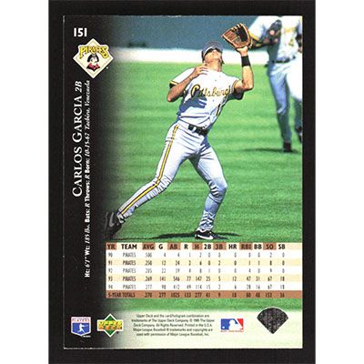 This is a 1995 Upper Deck Electric Diamond Carlos Garcia baseball card. The card is #151 and pictures show condition.