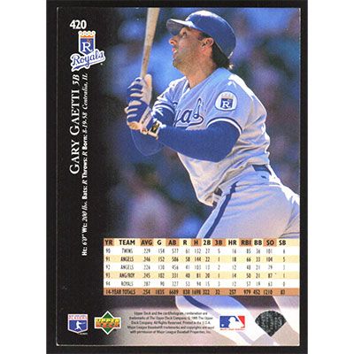 This is a 1995 Upper Deck Electric Diamond Gary Gaetti baseball card. The card is #420 and pictures show condition.
