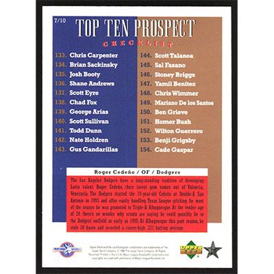 This is a 1995 Upper Deck Minors Top 10 Prospects Roger Cedeno baseball card. The card is #7 and pictures show condition.