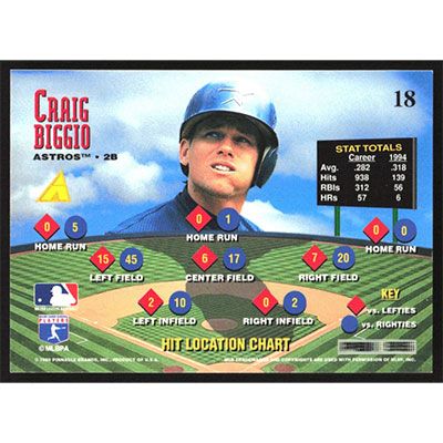 This is a 1995 Zenith Craig Biggio baseball card. The card is #18 and pictures show condition.