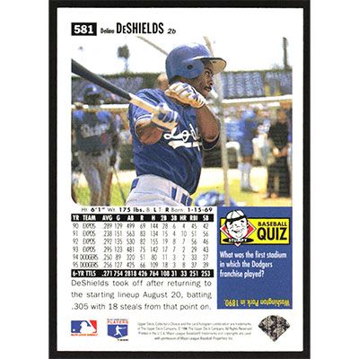 This is a 1996 Collector's Choice Delino DeShields baseball card. The card is #581 and pictures show condition.