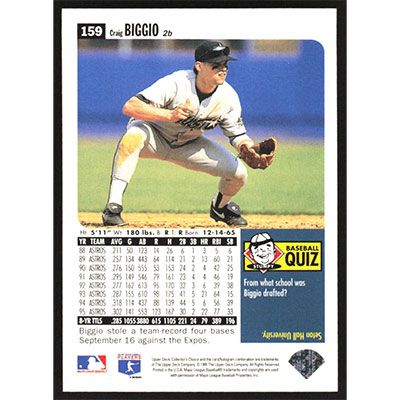 This is a 1996 Collector's Choice Silver Signature Craig Biggio baseball card. The card is #159 and pictures show condition.