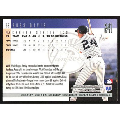 This is a 1996 Donruss Russ Davis baseball card. The card is #241 and pictures show condition.