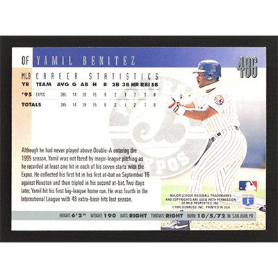 This is a 1996 Donruss Armando Benitez baseball card. The card is #486 and pictures show condition.
