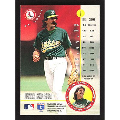 This is a 1996 Leaf Dennis Eckersley baseball card. The card is #2 and pictures show condition.