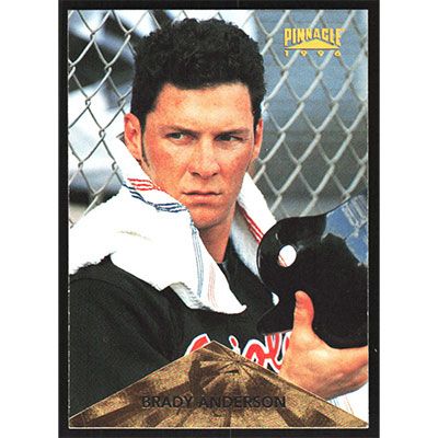 This is a 1996 Pinnacle Brady Anderson baseball card. The card is #74 and pictures show condition.