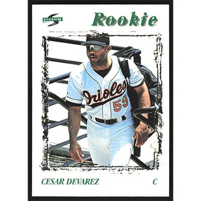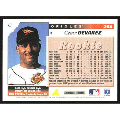 This is a 1996 Score Cesar Devarez baseball card. The card is #264 and pictures show condition.