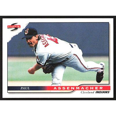 This is a 1996 Score Paul Assenmacher baseball card. The card is #400 and pictures show condition.
