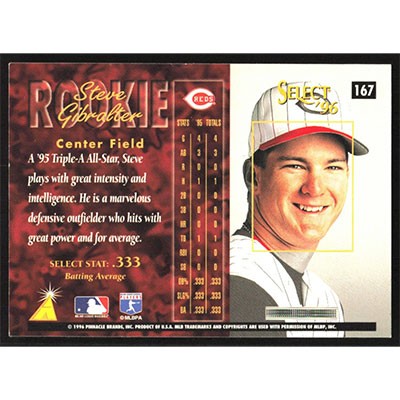 This is a 1996 Select Steve Gibralter baseball card. The card is #167 and pictures show condition.