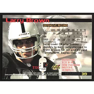 This is a 1996 Stadium Club Larry Brown football card. The card is #319 and pictures show condition.