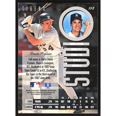 This is a 1996 Studio Travis Fryman baseball card. The card is #113 and pictures show condition.