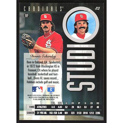 This is a 1996 Studio Dennis Eckersley baseball card. The card is #32 and pictures show condition.