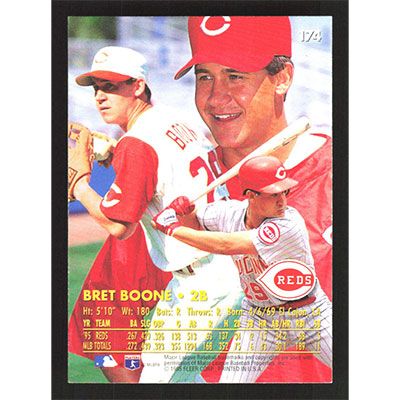 This is a 1996 Ultra Bret Boone baseball card. The card is #174 and pictures show condition.