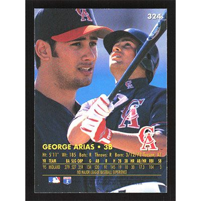 This is a 1996 Ultra George Arias baseball card. The card is #324 and pictures show condition.