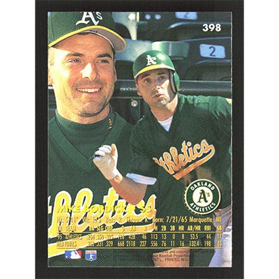 This is a 1996 Ultra Mike Bordick baseball card. The card is #398 and pictures show condition.