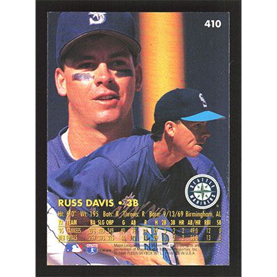 This is a 1996 Ultra Russ Davis baseball card. The card is #410 and pictures show condition.
