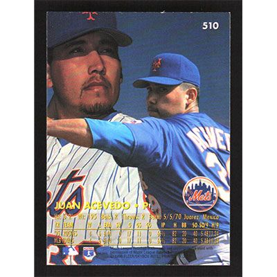 This is a 1996 Ultra Juan Acevedo baseball card. The card is #510 and pictures show condition.