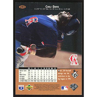 This is a 1996 Upper Deck Chili Davis baseball card. The card is #293 and pictures show condition.