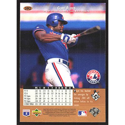 This is a 1996 Upper Deck Cliff Floyd baseball card. The card is #392 and pictures show condition.