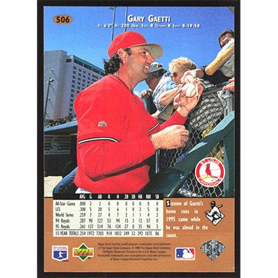 This is a 1996 Upper Deck Gary Gaetti baseball card. The card is #506 and pictures show condition.