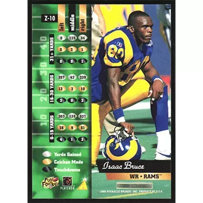 This is a 1996 Zenith Isaac Bruce football card. The card is #Z-10 and pictures show condition.