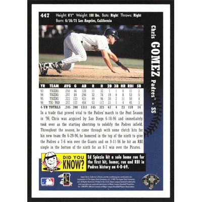 This is a 1997 Collector's Choice Chris Gomez baseball card. The card is #447 and pictures show condition.