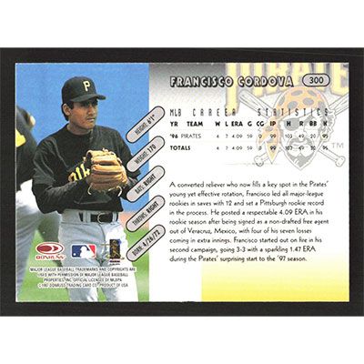 This is a 1997 Donruss Francisco Cordova baseball card. The card is #300 and pictures show condition.