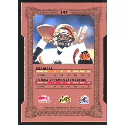 This is a 1997 Donruss Preferred Cut to the Chase Jeff Blake National Treasures Bronze football card. The card is #147 and pictures show condition. Team: Cincinnati Bengals