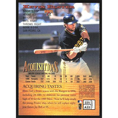 This is a 1997 Finest Kevin Elster baseball card. The card is #225 and pictures show condition.