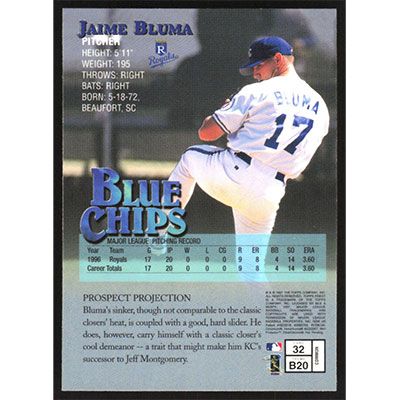 This is a 1997 Finest Jaime Bluma baseball card. The card is #32 and pictures show condition.