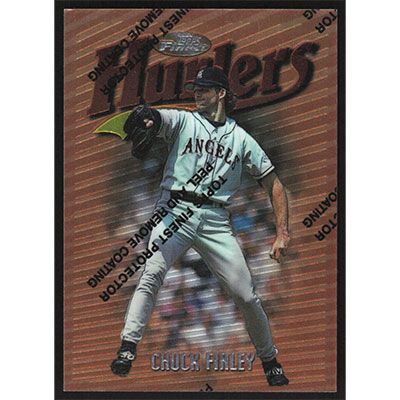 This is a 1997 Finest Chuck Finley Hurlers baseball card. The card is #53 and pictures show condition.