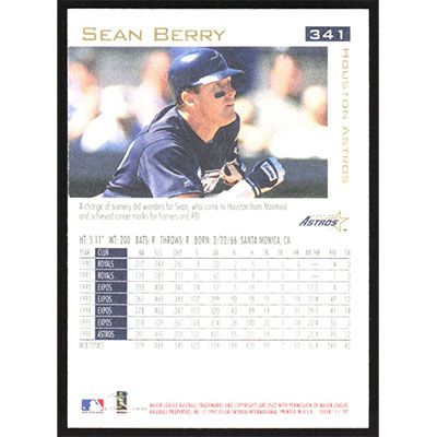 This is a 1997 Fleer Sean Berry baseball card. The card is #341 and pictures show condition.