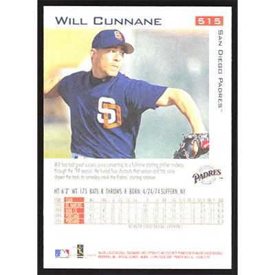 This is a 1997 Fleer Will Cunnane baseball card. The card is #515 and pictures show condition.