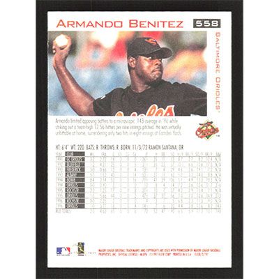 This is a 1997 Fleer Armando Benitez baseball card. The card is #558 and pictures show condition.