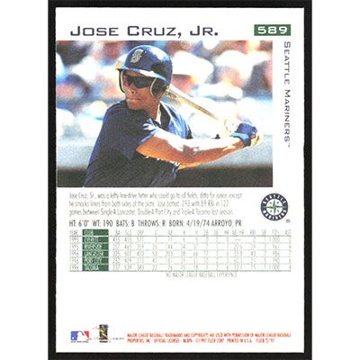 This is a 1997 Fleer Jose Cruz Jr. baseball card. The card is #589 and pictures show condition.