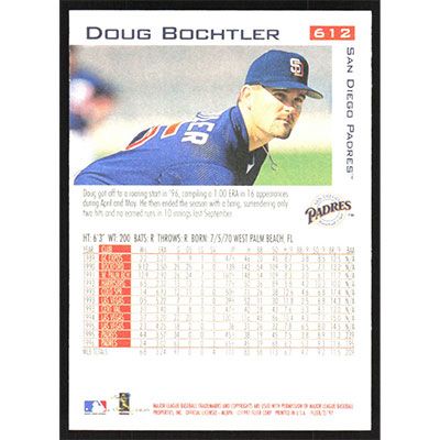 This is a 1997 Fleer Doug Bochtler baseball card. The card is #612 and pictures show condition.