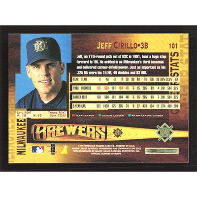 This is a 1997 Pinnacle Jeff Cirillo baseball card. The card is #101 and pictures show condition.
