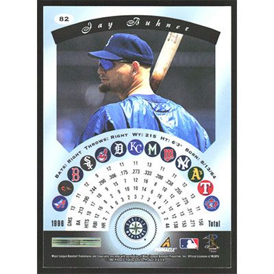 This is a 1997 Pinnacle Certified Jay Buhner baseball card. The card is #82 and pictures show condition.