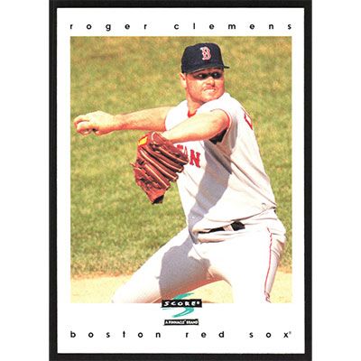 This is a 1997 Score Roger Clemens baseball card. The card is #181 and pictures show condition.