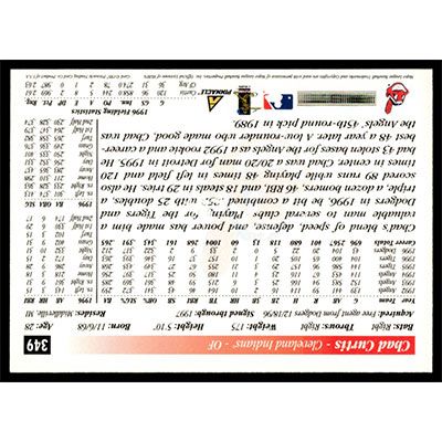 This is a 1997 Score Chad Curtis baseball card. The card is #349 and pictures show condition.