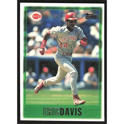This is a 1997 Topps Eric Davis baseball card. The card is #218 and pictures show condition.