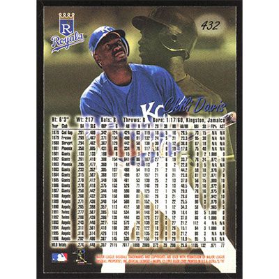 This is a 1997 Ultra Chili Davis baseball card. The card is #432 and pictures show condition.