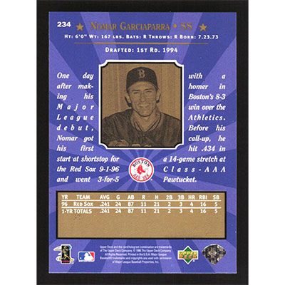 This is a 1997 Upper Deck Nomar Garciaparra Star Rookies baseball card. The card is #234 and pictures show condition.