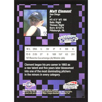This is a 1998 Best Cornerstone Matt Clement baseball card. The card is #5 and pictures show condition.
