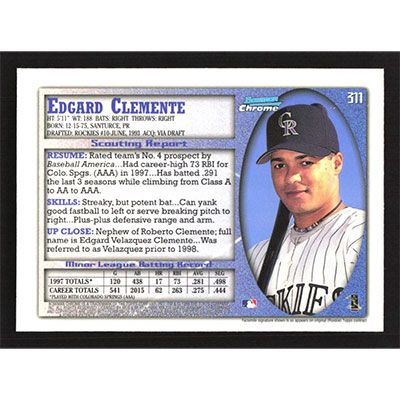 This is a 1998 Bowman Chrome Edgard Clemente baseball card. The card is #311 and pictures show condition.