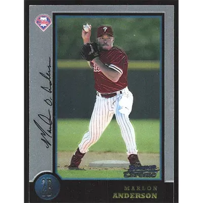 This is a 1998 Bowman Chrome Marlon Anderson baseball card. The card is #436 and pictures show condition.